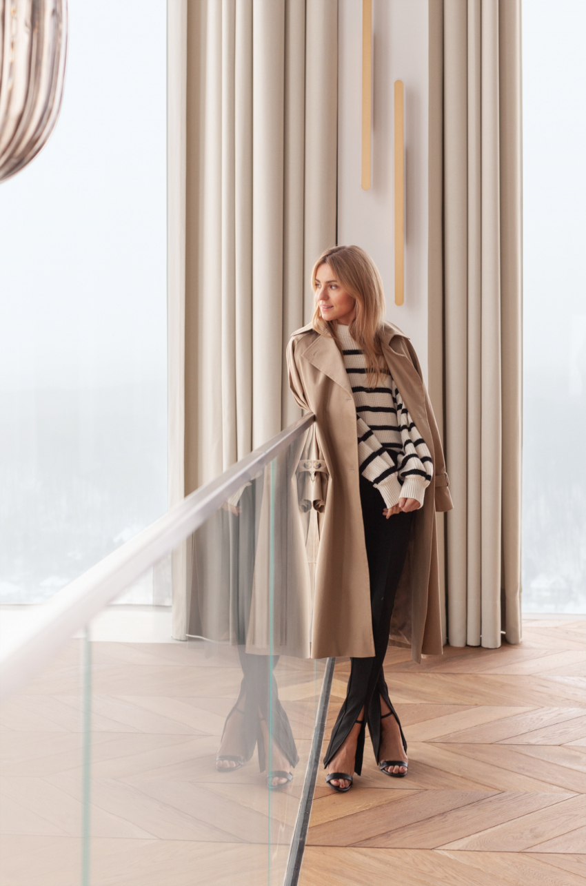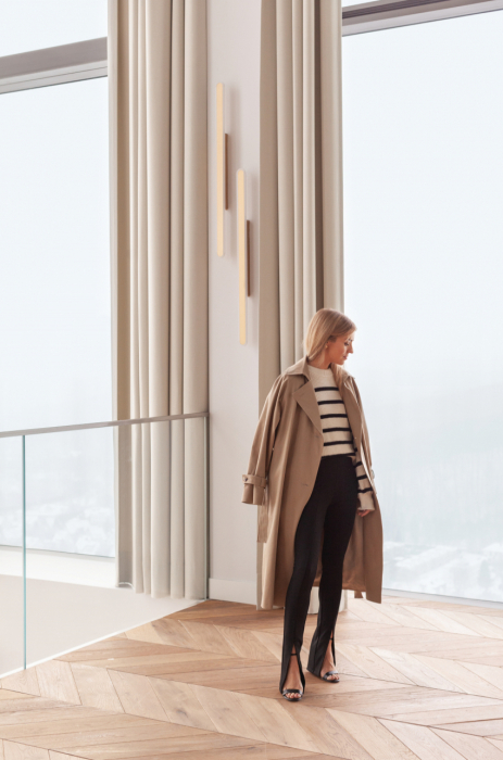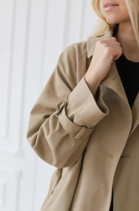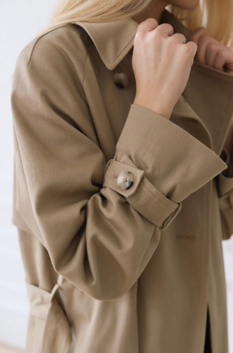Każdy sezon ma dla siebie charakterystyczny krój, bez którego nie wyobrażamy sobie budowania ponadczasowej garderoby. Dla nas atrybutem wiosny jest klasyczny trencz, dlatego nie mogło go zabraknąć w naszej kolekcji. Nasz nowy model został odszyty z wysokiej jakości szlachetnej tkaniny bawełnianej z dodatkiem elastanu, sprawiającej sprawia, że płaszcz jest mniej podatny a zagniecenia. Całość została wykończona wiskozową podszewką. Dwa rzędy melanżowych guzików, idealnie skrojony reglanowy rękaw, karczek oraz rozporek tyłu i charakterystyczne dla tego klasyka pagony nadają sylwetce odpowiednich proporcji i będą stanowić wykończenie wiosennych zestawów, zarówno tych o bardziej jak i mniej formalnym charakterze.