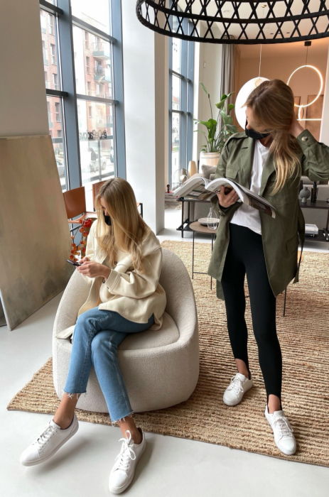 Klasyczne legginsy stanowia? baze? naszej całorocznej garderoby. Nasz nowy model został odszyty z wysokiej jakos?ci elastycznej i grubej dzianiny na bazie elastycznej mieszanki wiskozy i poliestru pochodza?cego z recyklingu. Wysoki stan wysmukla nogi. Dolna parta została wykon?czona strzemieniem i sprawia, z?e legginsy idealnie układaja? sie? na sylwetce i nie podwijaja? się, gdy nosimy je w towarzystwie zabudowanego obuwia. Ten model odnajdzie sie? zaro?wno w komfortowych zestawieniach z bluza? czy kardiganem, ale ro?wniez? w towarzystwie koszuli lub dopasowanej go?ry i oversize’owej marynarki.