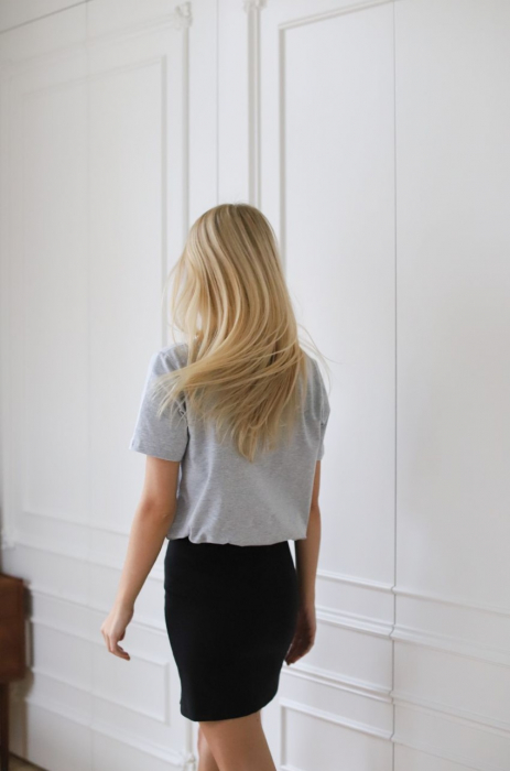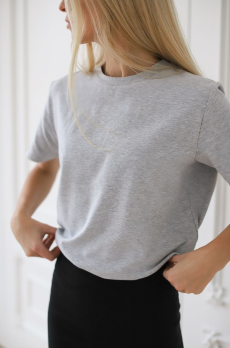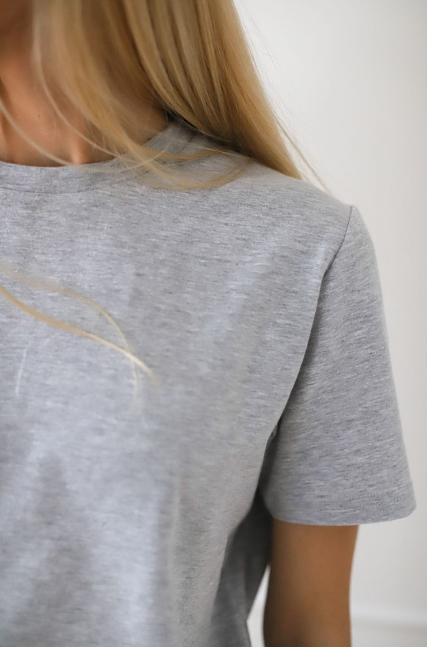 T-shirt w odcieniu szarego melanżu do klasyka gatunku, której nie powinno zabraknąć w żadnej garderobie. Nasz nowy model został odszyty z wysokiej jakości bawełny z dodatkiem elastanu, dzięki któremu nie traci formy podczas noszenia i zapewnia wygodę użytkowania. Ponadczasowy krój ze ściągaczem przy szyi z idealnie odszytymi szwami może stanowić wykończenie zarówno casualowych zestawień jak i w towarzystwie marynarki- tych bardziej eleganckich. My lubimy nosić go z dobrze skrojonymi spodniami i spódniczkami, uzyskując efekt niewymuszonego szyku.